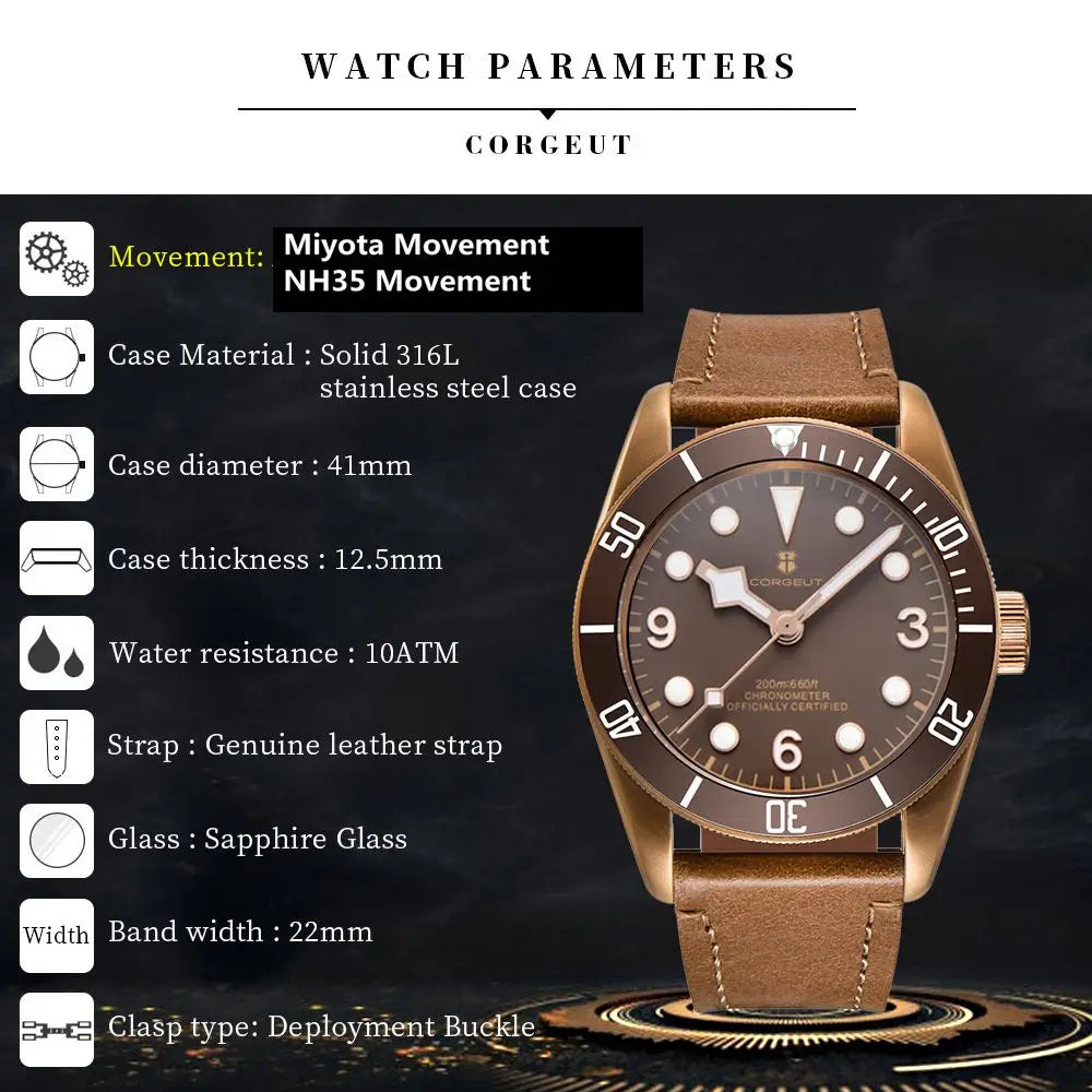 With a sweeping second hand, a 41-hour power reserve, and hacking functionality for exact time-setting, the NH35 isn’t just a movement — it’s a statement of mechanical intent. No batteries. No compromises. Just timeless performance, built to last.